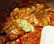 Imediat dupa prajire ,am adaugat apa ,boiaua dulce,rosiile intregi (pe care le-am taiat bucati cu spatula ) si bucatile de macrou.