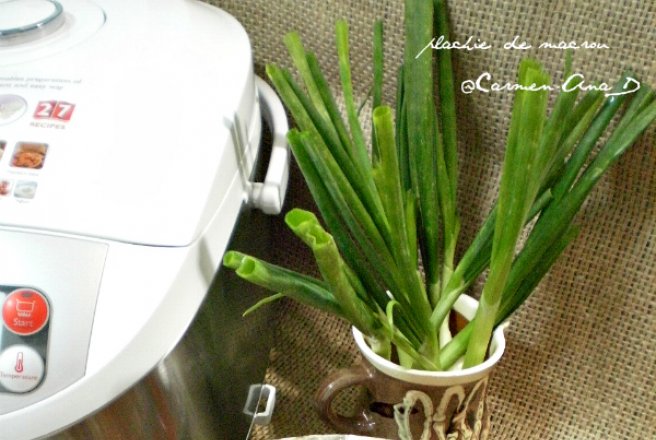 Am servit plachia calda,presarata deasupra cu ceapa verde tocata marunt.
