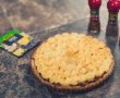 Intinde aluatul cu putina faina, cat sa acopere un diametru de tava de tarta de 24 cm, cu fund detasabil;