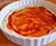 Ungem aluatul cu 3 linguri de ketchup si punem jumatate din catitatea de legume, iar peste legume jumatate din pipetul de pui prajit.