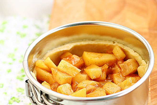 Asamblati prin a intinde aluatul pana ajunge la o grosime de 3 mm. Se aseaza in formele de tarta, se umple tarta cu umplutura de mere. Deasupra se aseaza o foaie de aluat , ca un capac.