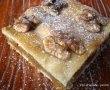 După ce se scoate plăcinta din cuptor, se unge cu siropul de miere (se acoperă tava cu un prosop) şi se taie după ce s-a răcit.