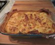 - Turnam compozitia in tava si dam la cuptorul incins pt cca 35-40 min. pana se rumeneste frumos deasupra.