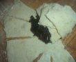 Fiecare bucata se intinde pe masa de lucru infainata, in mijloc presaram amestec de fibre (pentru a absorbi lichidul pe care-l lasa loboda in timpul coacerii), apoi taiem marginile cu pintenul, sub forma de petale.