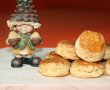 La final intindem aluatul de grosimea unui deget si decupam cu o forma rotunda(eu am avut o forma rotunda cu diametrul de 6 cm si mi-au iesit 32 bucati).asezam pogacelele obtinute intr-o tava unsa cu ulei si tapetata cu hartie de copt, la distanta mica una de cealalata si mai lasam 20 de minute sa stea, apoi le ungem cu oul batut si dam la cuptor. Cine doreste poate presara deasupra susan, chimen, mac etc.