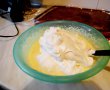 Crema: Incepem sa pregatim crema cand blaturile si siropul sunt reci, pentru ca trebuie sa ne miscam repede sa o asamblam. Punem la hidratat foile de gelatina in apa rece. Prregatim si frisca, eu am folosit smantana dulce pentru frisca 300 g si 200 ml frisca lichida Creme Patiserie Separat amestecam galbenusurile cu zaharul si laptele si asezam pe baie de abur, amestecam continuu pana se topeste zaharul si isi mareste volumul. Tragem de pe foc , stoarcem foile de gelatina si le punem peste galbenusuri, amestecam bine sa se incorporeze gelatina, lasam cca 4-5 min sa se tempereza galbenusurile, apoi le amestecam cu mascarponele si frisca.