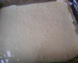 Punem blatul pe o tava si punem o forma dreptunghiulara reglabilain jurul lui. Insiropam cu aproximativ 100 ml de compot.