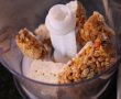 Blatul 1: Macinam biscuitii si batoanele de cereale si le amestecam cu margarina topita. Intr-o tava mai inalta punem folie alimentara si acoperim fundul acesteia cu amestecul de biscuiti apasand bine si avand grija sa ramana uniform. Dam la rece.
