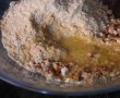 Blatul 2: Batem albusurile cu un praf de sare si adaugam treptat zaharul. Batem pana albusurile devin firme. Adaugam faina si grisul si amestecam usor, cu miscari de jos in sus. Dam la cuptor, la 180 de grade pana se rumeneste usor. Lasam la racit.