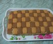 Peste blat punem toata crema iar deasupra asezam biscuitii alternand unu de vanilie , unu de cacao si la final va arata la fel cu o tabla de sah.