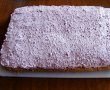 Blat: Mixam albusurile spuma cu un varf de sare. Cand albusurile sunt tari, adaugam zaharul si mai mixam cateva minute. Apoi adaugam treptat mixand dupa fiecare: galbenusurile, laptele si uleiul. La final incorporam faina amestecata cu praful de copt.