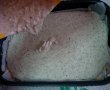Separat, frecam bine cele 4 oua cu zaharul praf, pana-si dubleaza volumul, apoi adaugam vanilia si nuca. Amestecam si turnam compozitia peste pesmet.