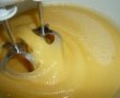 Ouale cu un praf de sare, se mixeaza cu zaharul doua trei minute, se adauga laptele, vanilia, smantana,faina si praful de copt iar la sfarsit untul topit.