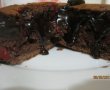 O tava de marime mijlocie se ımbraca ın hartie de copt sau se unge cu ulei. Se pune jumatate din compozitie, se adauga vişinele; Se acopera cu sosul de cacao iar apoi se adauga restul compozitiei.