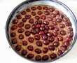 Asezam deasupra de jur imprejur visinele si dam tava la cuptorul preincalzit la 175-180 de grade timp de aprox 35 de minute sau pana trece testul cu scobitoarea.