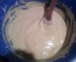 Blat: Separi albusurile de galbenusuri, bati albusurile spuma si pui cele 8 linguri de zahar, apoi bati in continuare. Freci galbenusurile si le amesteci usor cu albusul batut spuma. Pui cele 8 linguri de faina si amesteci bine. Coci jumatate din compozitie, iar in cealalta jumatate adaugi 2 linguri cacao si coci si partea aceasta. Dupa ce ai copt cele 2 parti de blat, le lasi sa se raceasca si le insiropezi.