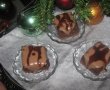 cind s-a racit blatul se portioneaza si pe fiecare cubulet se toarna glazura iar deasupra ne jucam cu putin sirop de ciocolata ,obtinut din untul topit impreuna cu ciocolata amara nessquik-ul si smintina pt frisca.