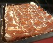 Cand blatul este copt doar usor la suprafata se scoate din cuptor, se unge cu un strat generos de gem si se pun albusurile batute spuma. Cu dosul unei lingurii se fac varfuri de bezea. Introducem tava inapoi la cuptor si micsoram focul la 150 de grade C si o coacem pana bezeaua devine usor rumenita.