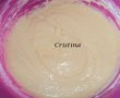 Aluat: Toate ingredientele sa fie la temperatura camerei.Se mixeaza untul cu zaharul, zaharul vanilinat,apoi cate un ou , pe rand.Faina se amesteca cu praful de copt si sare si se pune peste compozitia de unt si oua, alternand cu laptele.