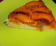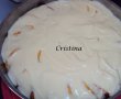 Aluatul se toarna peste piersicile din tava , se niveleaza si se coace in cuptorul preincalzit la 170 grade Celsius,timp de 45 minute.Dupa ce s-a copt se lasa 5 minute .Se trece cu un cutit pe marginea tavii,pe a o desprinde si se pune o farfurie (mai mare decat tava)deasupra ei si se rastoarna.