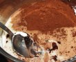 Intr-o cratita amesteca cacaoa, cu 80 gr zahar brun, siropul de ciocolata, esenta de alune de padure, amidonul alimentar si 100 ml lapte rece.Pune cratita pe foc apoi adauga restul de lapte.Lasa amestecul sa dea intr-un clocot apoi lasa-l sa fiarba usor 2 minute, amestecand continuu, pana cand incepe sa se ingroase.Toarna aceste amestec peste feliile de panettone din vas.Presara pudding-ul cu 20 gr zahar brun ramas si da-l la copt 30-35 minute.Serveste pudding-ul cald sau rece.