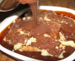 Incalzeste cuptorul la 200⁰C .Pentru pudding, unge feliile de panettone cu crema de ciocolata cu alune, pe ambele parti.Aseaza feliile unse in vasul cu caramel.