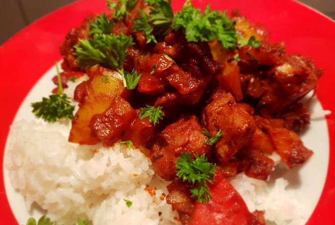 Se taie pieptul de pui in cuburi, la fel si ardeii si ceapa. Usturoiul se piseaza.