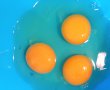 1. Se bat ouale spuma si se amesteca cu bere si putina sare .