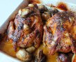 Sosul de vin trebuie sa scada, sa devina gros, aromat. Stropim din cand in cand cu sos peste puisori.