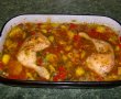 Se scoate tava si se pune dovlecelul, ardeiul si deasupra pulpele.