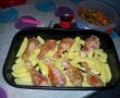 Cand pulpele si cartofii sunt gata, le asociati cu sosul-garnitura. Si a iesit ... ca-n poze :)