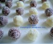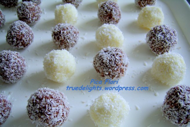 Eu am impartit compozitia in doua. Din prima am facut raffaello albe ,iar in a doua am pus o lingura cu cacao - la insistenta copilului :) si au iesit raffaello cu ciocolata...