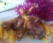 Dam la cuptorul preincalzit la 200 gr cca 60-70 de minute ,( depinde cat de tanara sau batrana era rata ) , verificam in primele 40-50 de minute carnea!