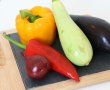 Am curățat legumele și le-am tăiat felii. Am încins grătarul și le-am fript la foc iute. Am ținut legumele cam 30 de secunde pe fiecare parte, astfel încât să nu se ardă, dar nici să rămână crude. Au iesit delicioase – cu textura numai buna pentru ratatouille.