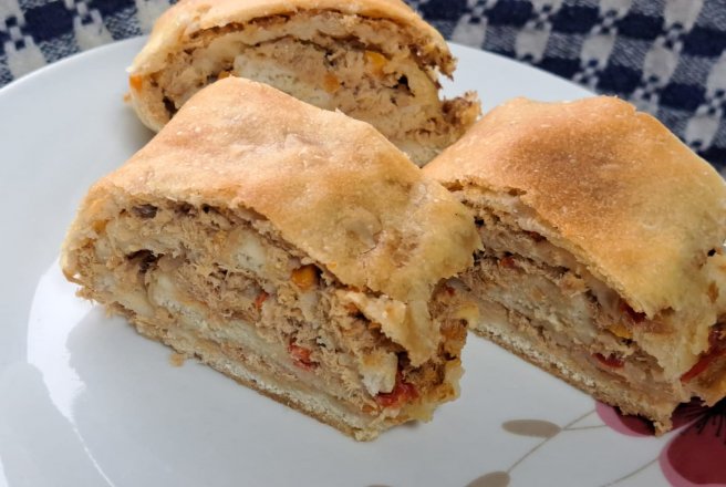 Ingredientele de care aveti nevoie sunt: faina, drojdie, zahar, ton, ceapa, morcov, ardei, ulei, lamaie.