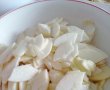 Curatam merele, le taiem in patru si apoi feliute subtiri. Stoarcem zeama de lamaie peste ele si ne ocupam de aluat.