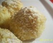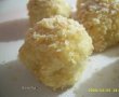 Intr-un castron amestecam branza de vaci cu gris,faina,zahar,vanilie,ou si in praf de sare. Amestecam pana obtinem o compozitie omogena, pe care o impartim in 10 parti egale.