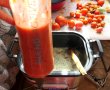 Am taiat ceapa marunt, sunculita bucatele mici, rosiile le-am pus in blender si le-am blendat.