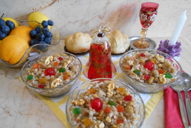 A mai rămas să prezint rețeta de grâu fiert, care nu este colivă, cum ar crede unii. Se face cam din aceleași ingrediente de bază, dar este mai moale, mai puțin scăzut și se îmbunătățește cu: nuci, stafide, fructe confiate, coajă răzuită de lămâi și de portocale, esențe aromatice...