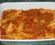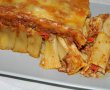 Se tapeteaza o tava cu hartie de copt (trebuie un vas cu 3-4 cm mai inalt decat rigatoni.