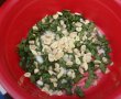 - Intr-un bol punem uleiul de masline, sare marina dupa gust, usturoi dupa gust si busuioc prospat tocat marunt.