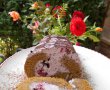 O rulada mov foarte buna si aratoasa. Eu am decorat-o cu mure dar pana cand am scos-o pentru a fi feliata si mancata murele de deasupra au disparut , iar fiica-mea avea o figura de nevinovat :) .