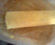 Dupa ce se raceste, desfacem din servet, desprindem hartia de copt si ungem cu putin gem, nu prea mult ca sa nu curga. Rulam din nou si taiem toata rulada felii.