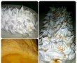 Se bat albusurile cu un praf de sare, se adaugă la amestecul de mai sus.