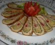 3. Aranjati cu atentie o clatita sau omleta ( vezi mai jos), dar nu o aranjati neteda pe carne, ci putin strinsa ,botita , ca in taietura sa dea un efect mai frumos.