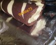 Cand totul e pregatit se insiropeaza bine blatul cu sirop apoi se pune crema si se ruleaza din nou
