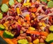 Am capatat obiceiul cand am musafiri sa pun pe masa langa platoul cu aperitive macar o salata-doua. Aceasta salata mai consistenta a fost adresata in mod special domnilor. Mereu am pe stoc conserva de ciuperci, porumb boabe, fasole boabe. In caz de extrema urgenta - musafiri la orizont, te scot din impas.