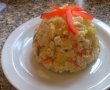 Fiecare leguma, inclusiv maslinele, in parte le-am taiat in cubulete cat de mici am putut eu. Dupa ce am maruntit am adaugat maioneza si am amaestecat bine dar cu grija sa nu faram legumele. Am pus bolul in frigider si gata salata! :-D