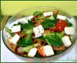 Se toarna dressingul la final si amesteca cu grija cu o spatula . Se garniseste la final cu cuburi de feta si cu ierburi uscate pentru salate. Este o cina excelenta, aromata si super usoara .