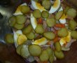 se toarna peste salata, amestecand usor sa nu zdrobim prea tare ouale.